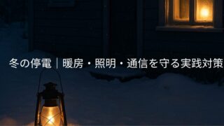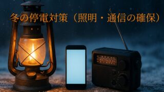冬の停電で照明や通信が使えない時に備えるための完全ガイド。LEDランタン・モバイルバッテリー・ラジオ・手回し発電などの必需品から、家族との連絡手段や寒冷時の注意点まで、冬の停電に強くなるための実践的な防災対策を解説します。